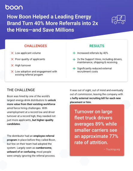 In just six months, Boon’s gamified referral platform increased employee referrals by 40%,